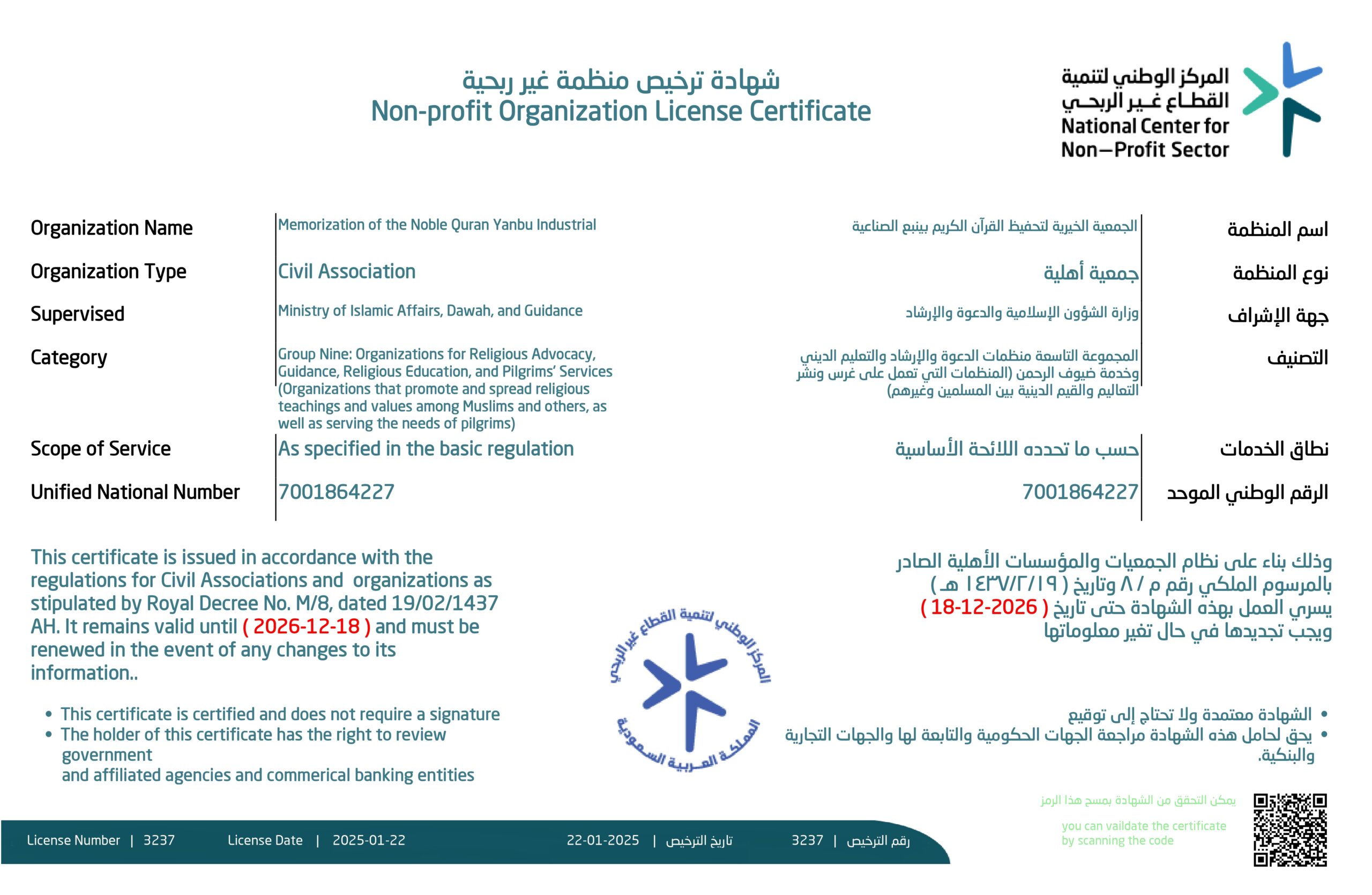 شهادة التسجيل